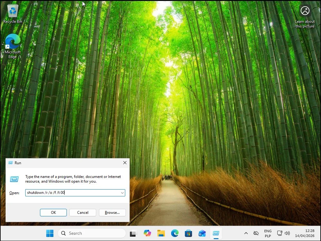 Another way to enter Recovery Mode is to use the command shutdown /r /o /f /t 00