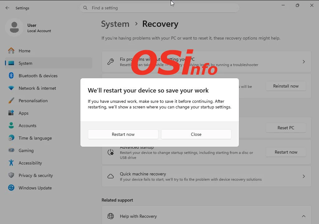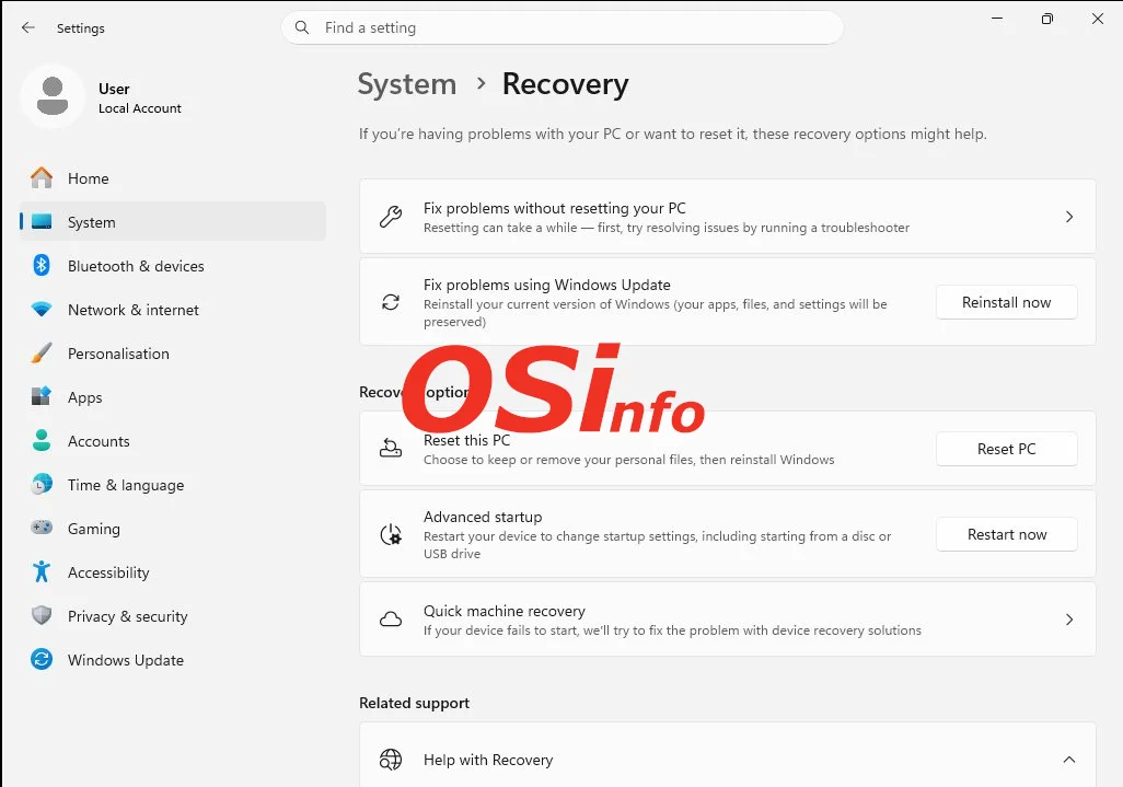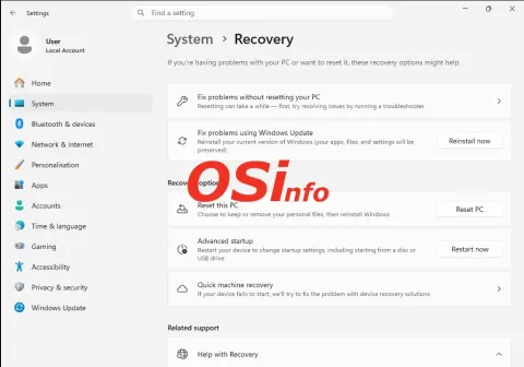 There’s an easy way to do this in Windows 11. Once you’re logged in, go to Settings -> System -> Recovery