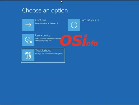 After restarting, the system will boot into recovery mode. On the first screen, select "Troubleshoot."