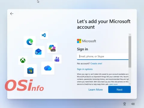 After restarting, we will see the windows of another configuration wizard. Currently, installation using official methods requires logging in with a Microsoft account. Select the “Sign in” button on the screen.